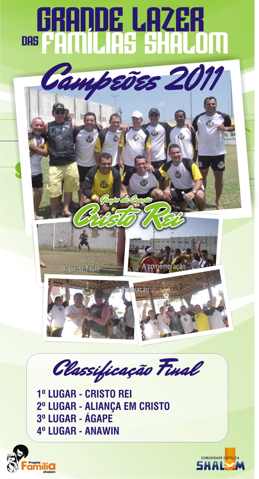 Nesse último domingo aconteceu o lazer do projeto família 2011. Dia decontraido para todas as famílias do projeto, houve o torneio de futebol onde o vencedor foi o Grupo de oração Cristo Rei. Parabéns!!!